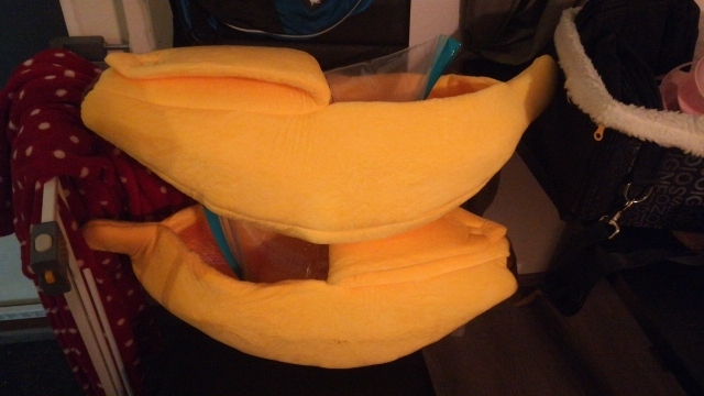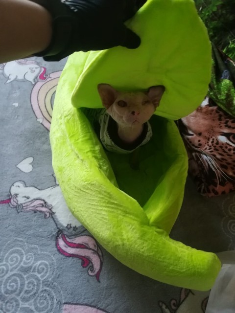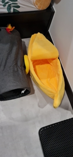 Nice banana! Both my big (5,5 and 6 kg) cats will fit in here. Sent and reached quickly.